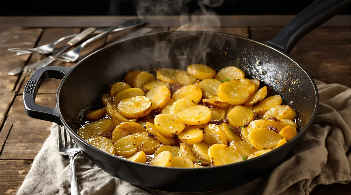 Ce plat a quelque chose de presque oublié. Il vient d’une époque où l’on portait son plat chez le boulanger pour le faire cuire doucement dans le four à pain. Pas de crème, pas de fromage, juste des pommes de terre, des oignons, du bouillon et du beurre. Et pourtant, le goût est là. Très présent.